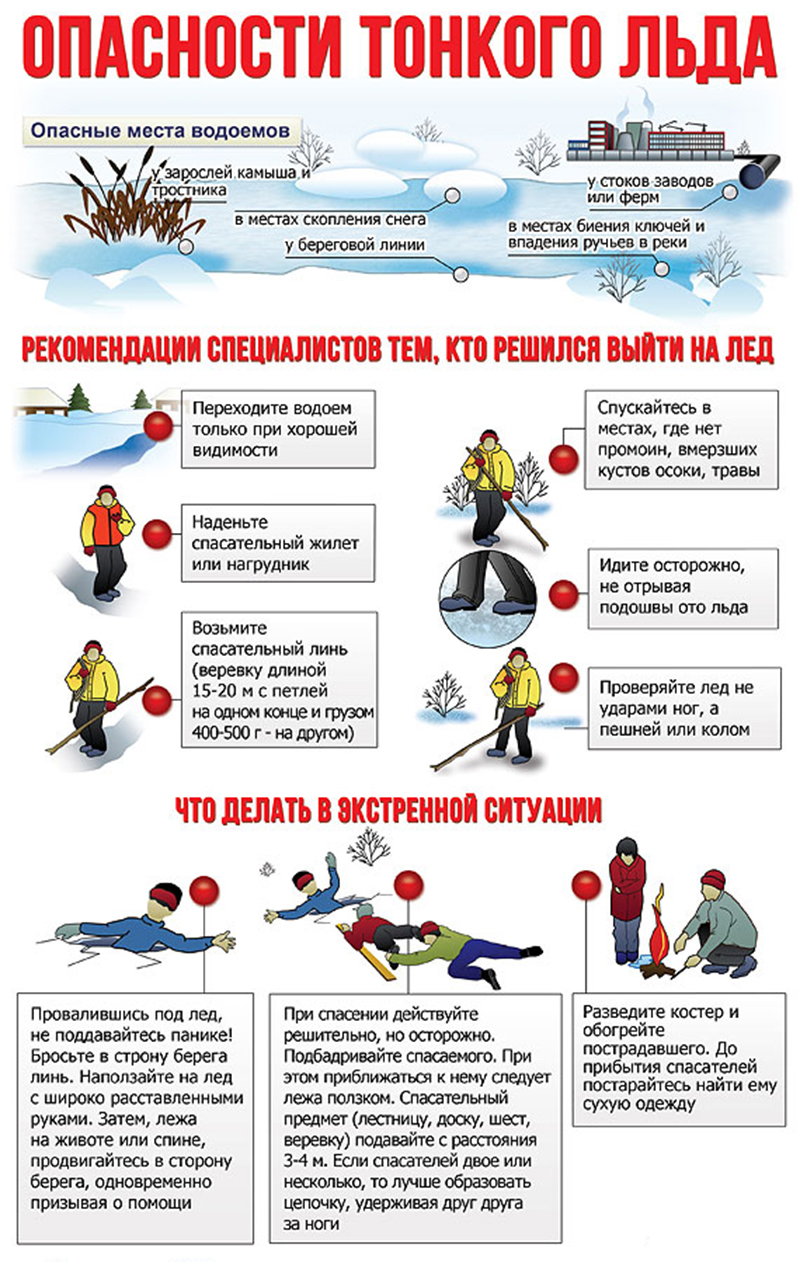 Ни в коем случае нельзя выходить на лед в темное время суток и при плохой видимости (туман, снегопад, дождь).