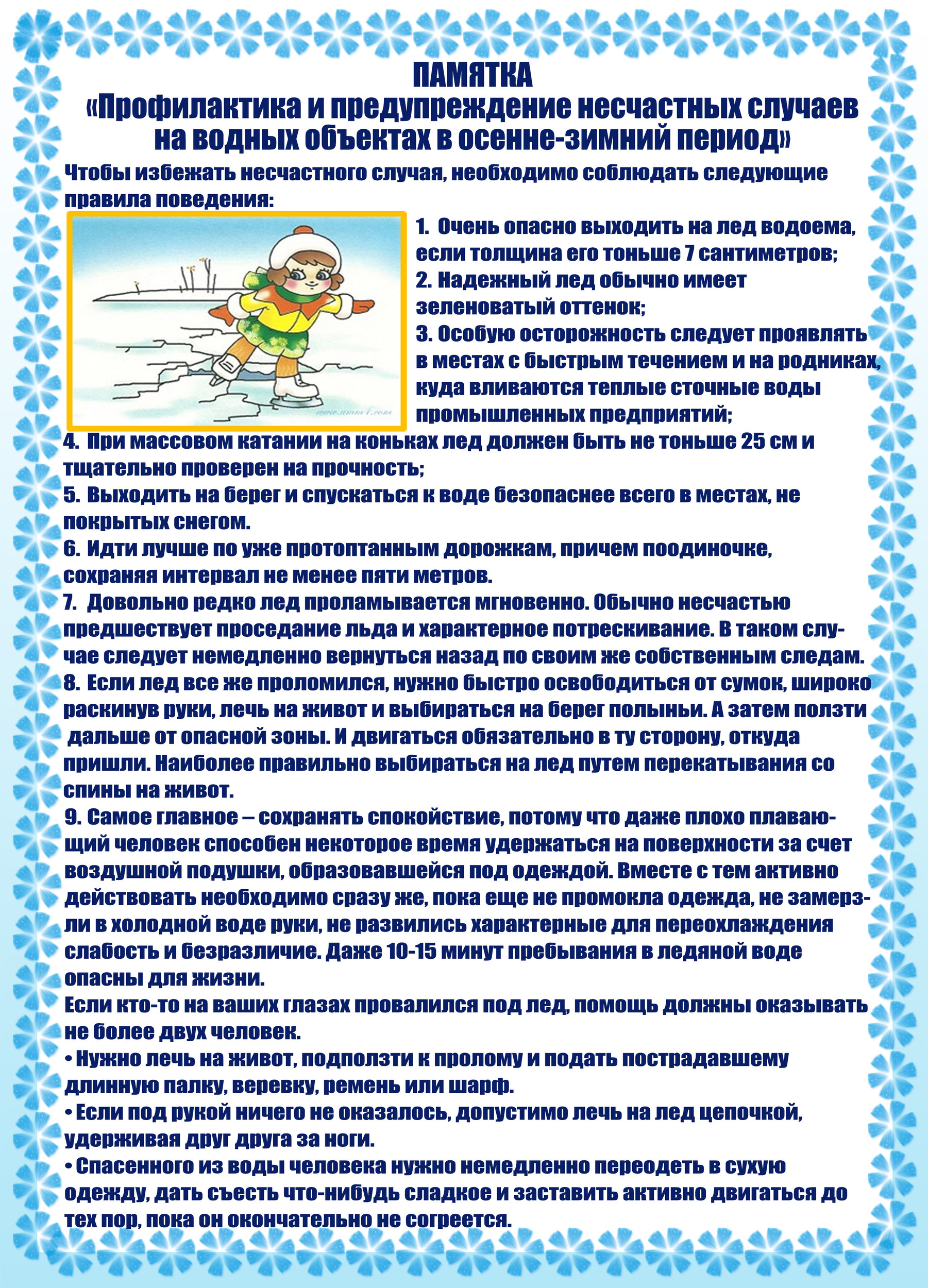 Ежегодно в осенне-зимний период на водных объектах гибнут десятки человек, в их числе дети. Несоблюдение правил безопасности на водных объектах в осенне-зимний период часто становится причиной гибели людей.